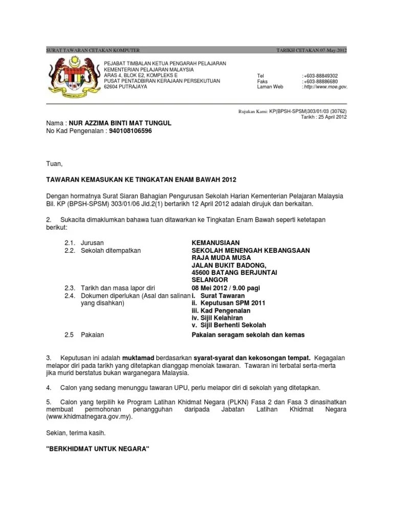 Semakan Tawaran Kemasukan Ke Tingkatan 6 Bawah Tahun Lower Sixth Intake Myschoolchildren Com